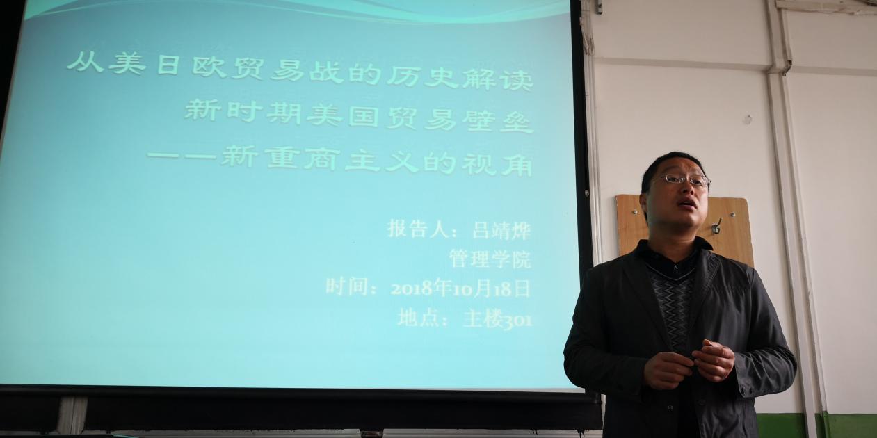 10月18日上午,银河集团官网吕靖烨老师副教授在主教学楼301教室为公司员工作了题为“从美日欧贸易争端的历史解读新时期美国贸易壁垒--新重商主义的视角”的主题讲座。银河集团官网研一员工到场聆听。
