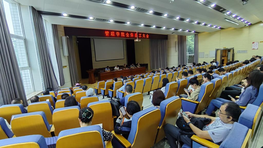 2023年8月26日上午9点,银河集团官网在雁塔校区北院主楼报告厅召开2023-2024学年第一学期第一次全院教工大会。全院110余名教职工参加了会议,会议由李红霞主持。